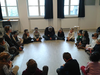 Vandaag namen juf Sanne en juf Els van de Brede school ons opnieuw mee op avontuur. En..., het was echt dolle pret! Eerst mochten we eens beleven hoe het voelt om niet te kunnen kijken en enkel te vertrouwen op wat je hoort ... We speelden ook een balspel MAAR opnieuw konden we de bal niet zien (er zat een klein belletje in zodat we deze konden horen)! Ook 'blind' tekenen en schminken werden uitgetest.Onze zintuigen werden alvast weer geprikkeld DANKZIJ JUF ELS EN JUF SANNE!!