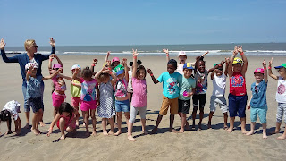 Donderdag 1 juni stond alvast met stip genoteerd op onze klaskalender ... onze schoolreis aan zee!!! Wat hebben we samen genoten van: het bouwen van zandkastelen, het graven van diepe putten, het verzamelen van schelpjes, het met zand bedekken van vriendjes en vriendinnetjes, het pootje baden in de zee, het lekker smullen van al het lekkers dat we meebrachten van thuis EN van het delen ervan en het samen opeten ervan EN NOG ZO VEEL MEER! In één woord, het was .... FANTASTISCH!!! Zowel de kleuters als de juffen hebben echt met volle teugen genoten van de zonovergoten dag, de glimlach op de gezichtjes van eenieder en alle fijne, onvergetelijke momenten!!!